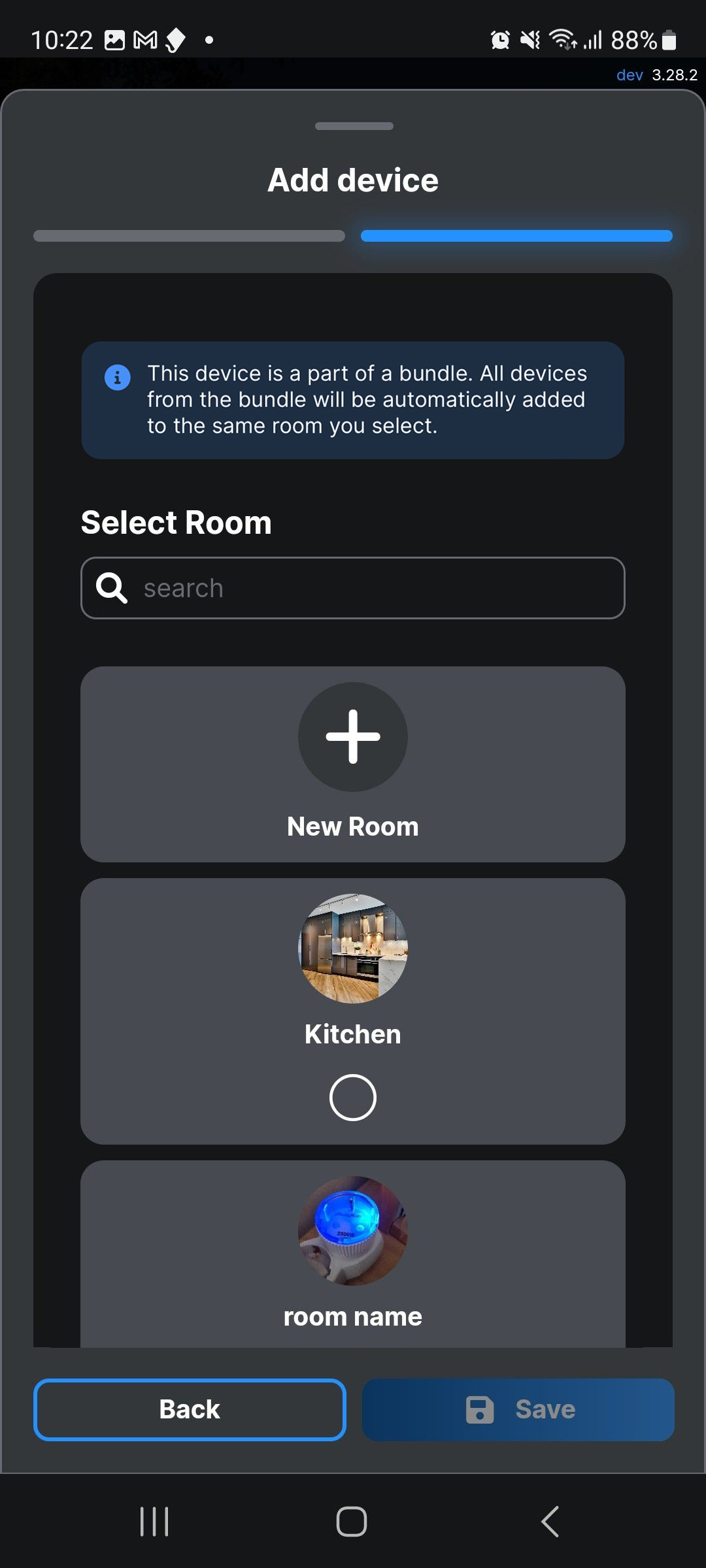 Add the Gateway to a room of your preference. Alternatively, create a new room and then select Save.