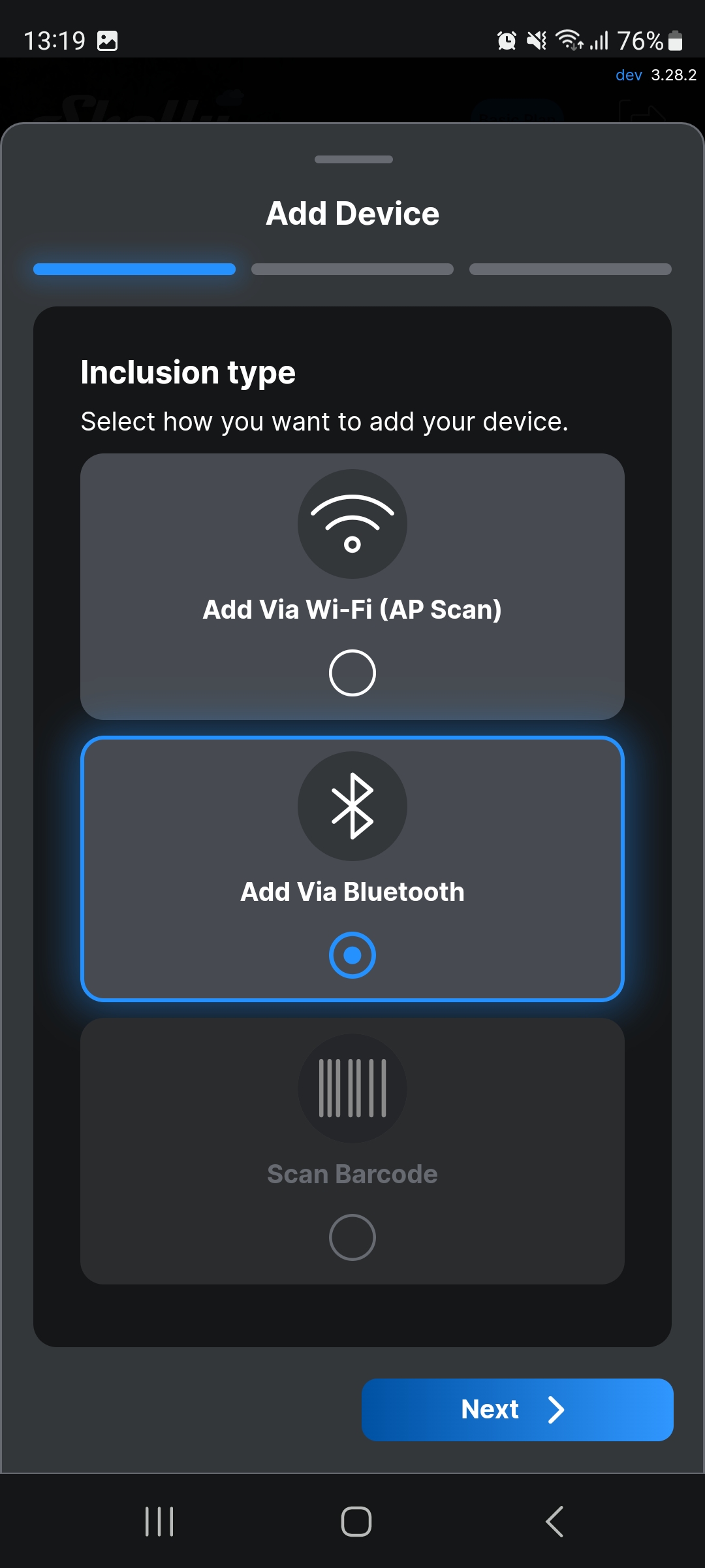 Select Add via Bluetooth, then select Next.