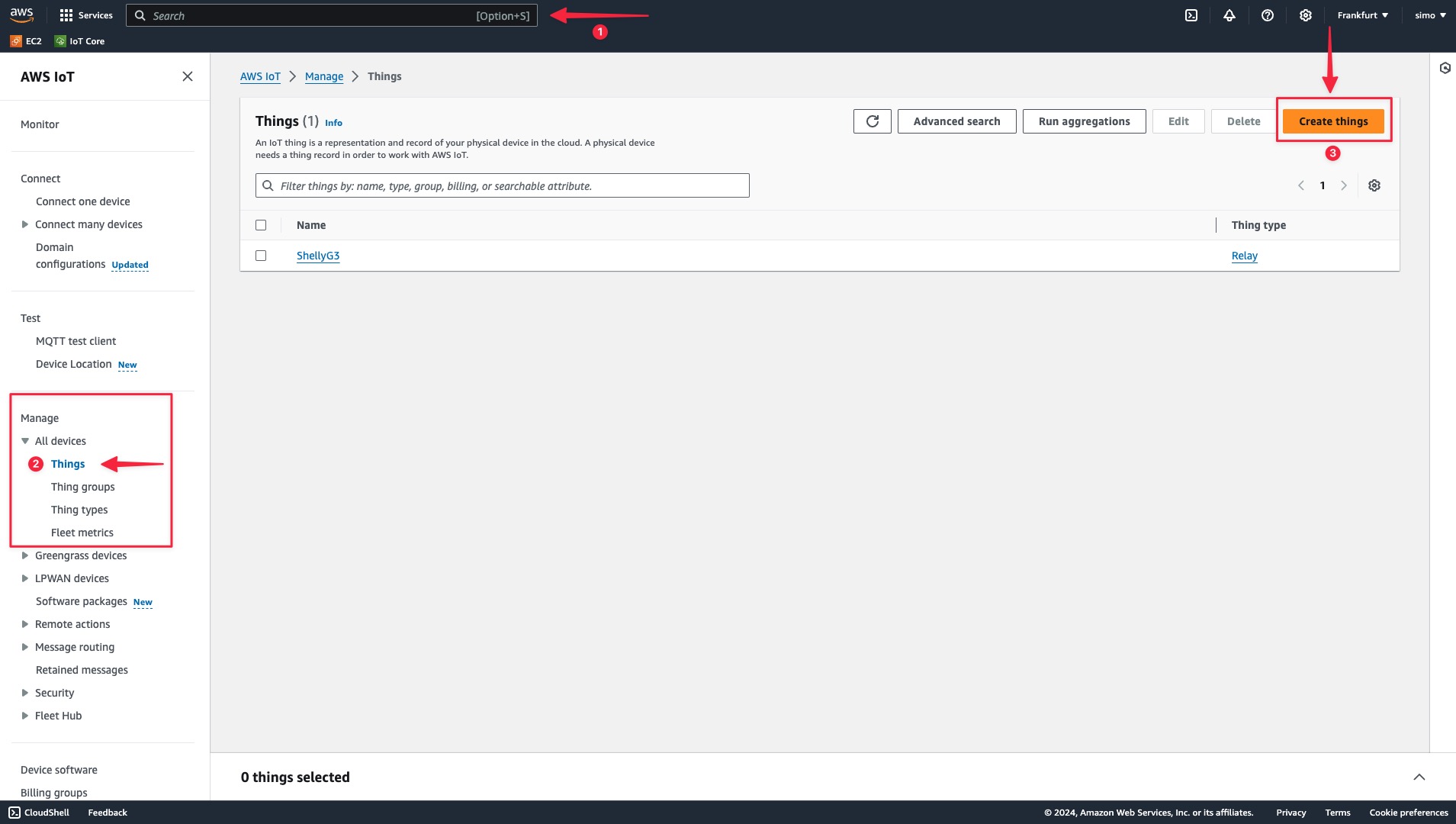 After rebooting the Shelly device, return to the AWS IoT Core console.