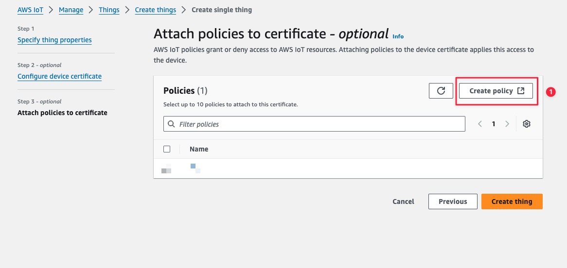 Here you will be asked to assign a policy, although it says “Optional”, we strongly advice to create one by clicking the Create Policy.