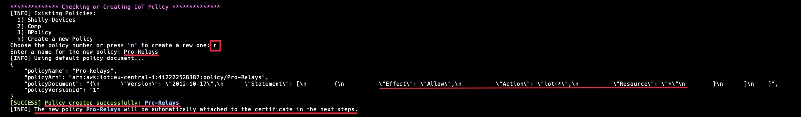 You have successfully set up your Shelly device to connect securely to AWS IoT Core using the provisioning script. Your device is now configured to communicate with AWS IoT Core, and you can begin monitoring and controlling it through AWS services.
