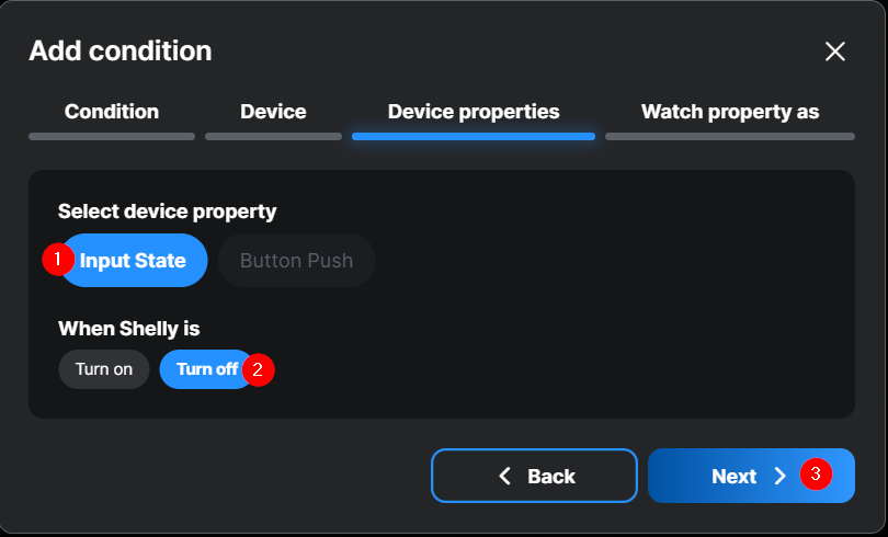 Once the wiring is done, you can configure the Shelly device to send notifications. Follow these steps below. This example will be from web browser but the steps form the mobile app are same. Make sure that the input to which L is connected (coming from RCD to i4 physical input) is in Switch state