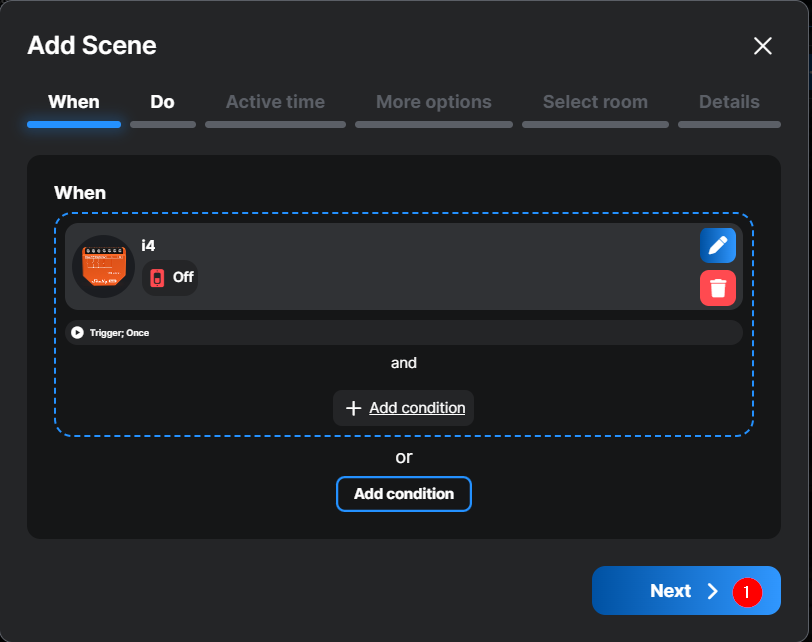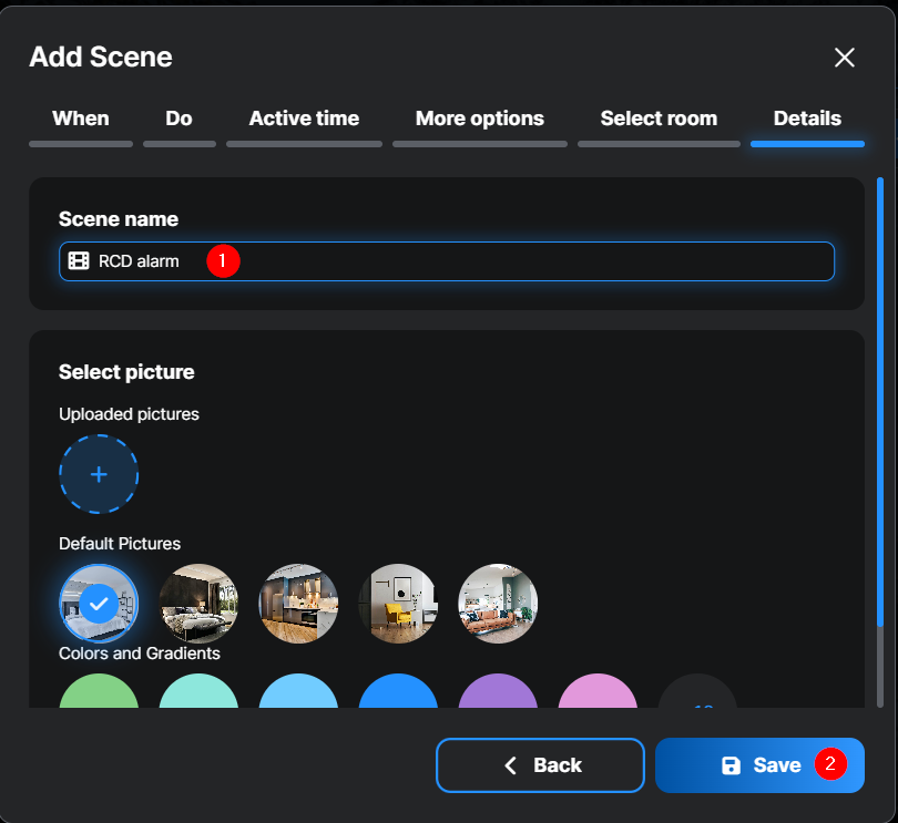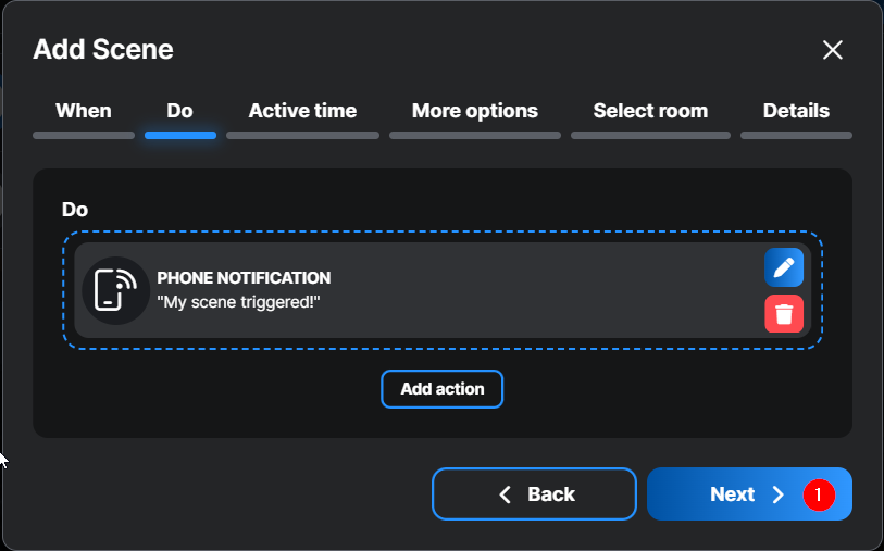 Follow the steps as shown on the screenshots below in order to configure the scene to send notifications