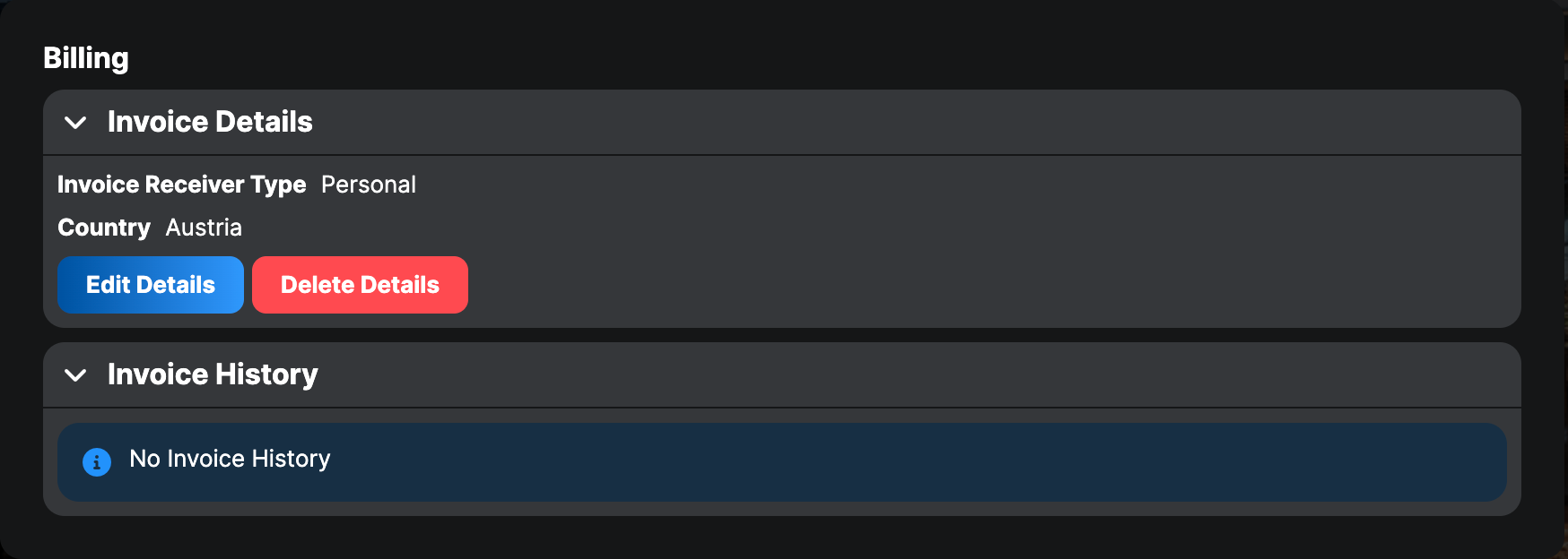 Observe or edit your invoice details such as the Invoice Receiver Type and the Country.