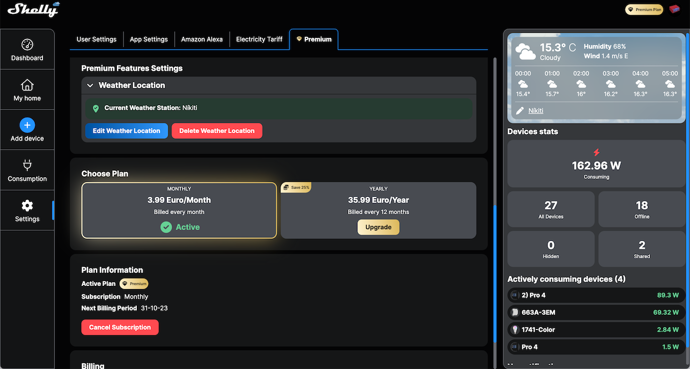 The Premium service offers many new functionalities that will improve your experience with the Shelly app and Shelly devices.