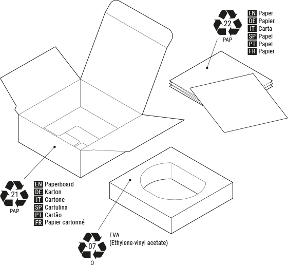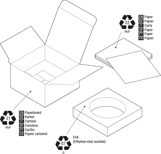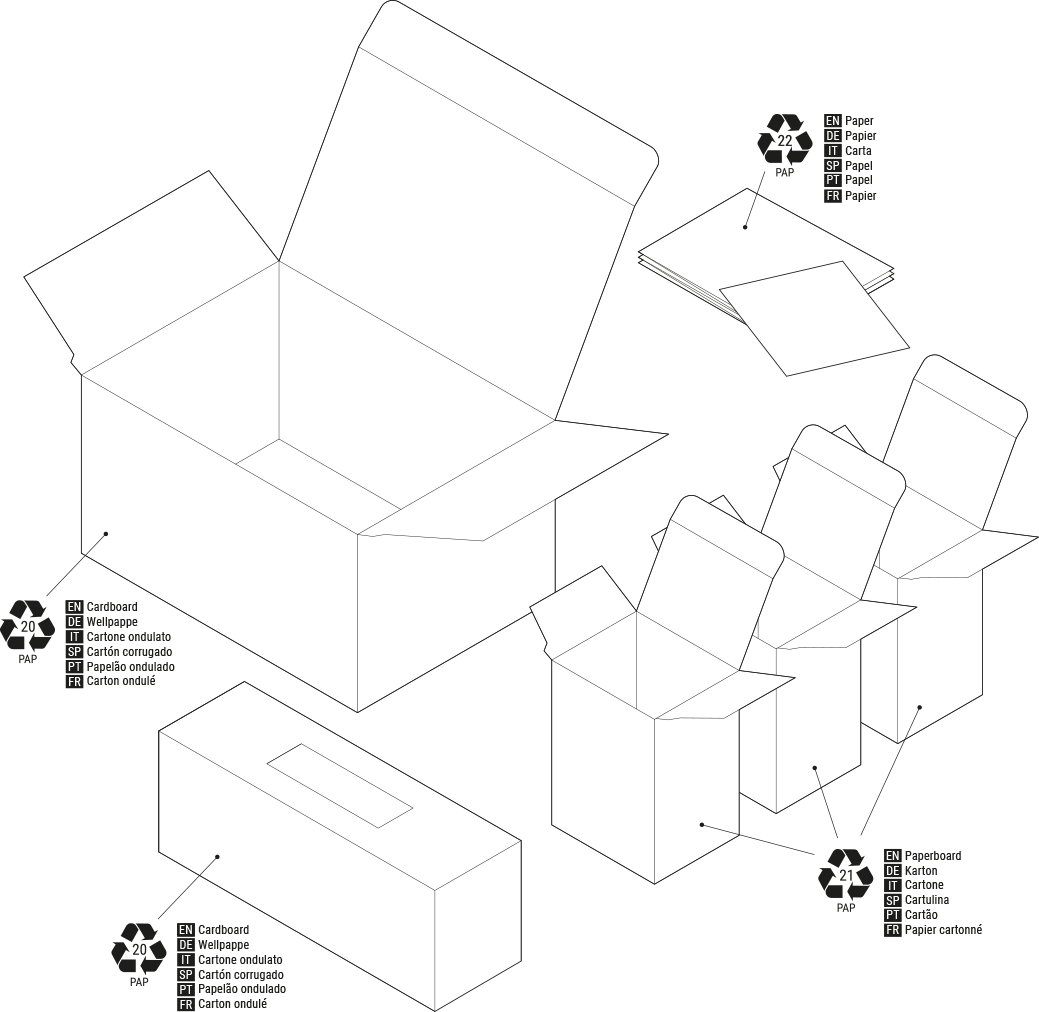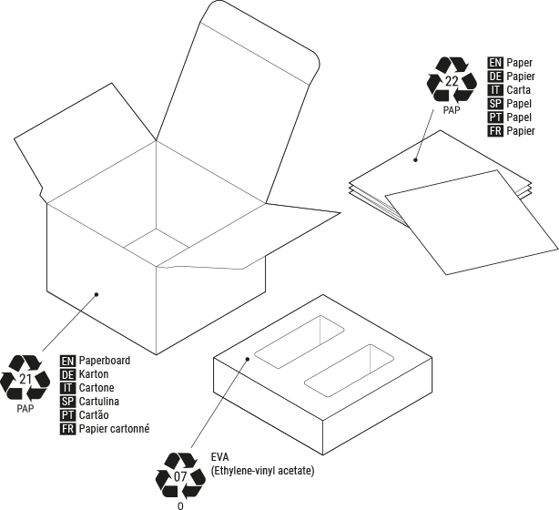 SP Recogida selectiva de residuos. Consulte las regulaciones de su municipio para el material relevante.