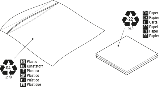 EN Separate waste collection. Check your municipality's regulations for the relevant material.