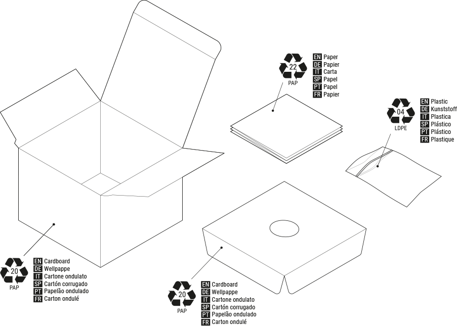 PT Faça uma separação seletiva. Consulte as regras do seu município para os materiais relevantes.