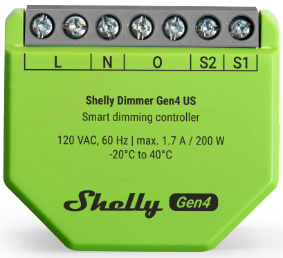 Shelly Dimmer Gen4 US (the Device) is exclusively designed for the US market. It is a single-channel smart dimming controller which allows remote control of dimmable lights and dimming drivers through a mobile phone, tablet, PC, or home automation system. The Device supports Wi-Fi, Bluetooth and Zigbee connectivity. It can work standalone in a local Wi-Fi network or it can also be operated through cloud home automation services. It can be accessed, controlled, and monitored remotely from any place where the User has internet connectivity, as long as it is connected to the Internet. Shelly Dimmer Gen4 US has an embedded Web Interface which can be used to monitor and control the Device, as well as adjust its settings. The Device can be used as trailing edge dimmer switch, only with neutral wire.