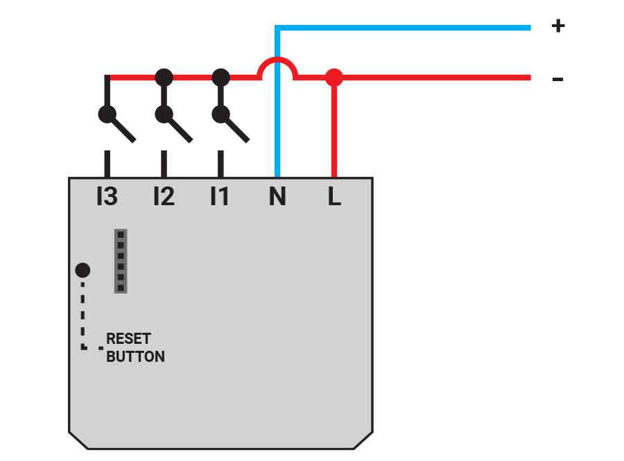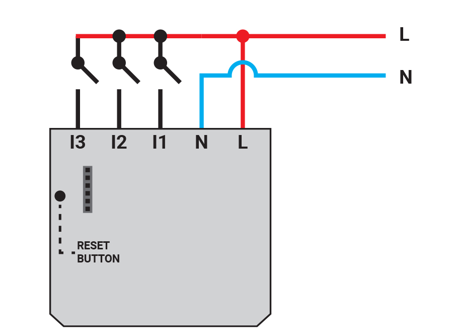 Shelly i3 has no relays but is small enough to be installed virtually anywhere and shows the status of 3 inputs. The device is in one of the switches and can command other connected Shelly relays, sensors, or HTTP, MQTT or CoAP controlled devices. Opportunities are endless through discrete commands on the home network or scenes in the cloud.
