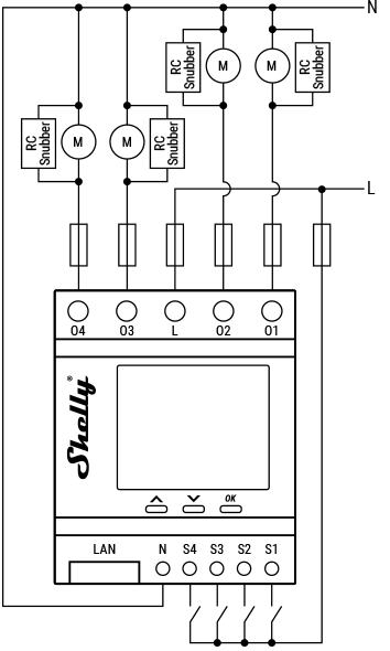 S1, S2, S3, S4 | Switch/button input terminals | N | Neutral wire |