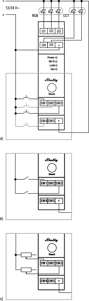 ![]() Lights x 5 wiring | ![]() RGB and CCT wiring | ![]() RGB and lights x 2 wiring | ![]() CCT x 2 wiring |
