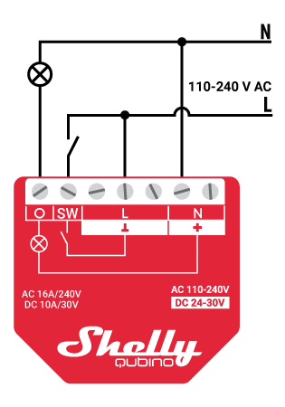 SW | Switch/push-button input terminal (controlling O) | + | 24 - 30 V DC positive wire |